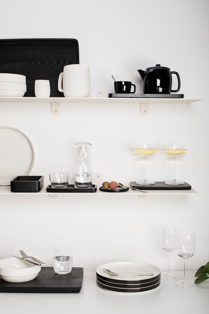Het dienblad is gemaakt van massief essenhout en behandeld met een matte olie. Die moderne afwerking geeft het een tijdloze look. Zo kan ze altijd en overal gebruikt worden.