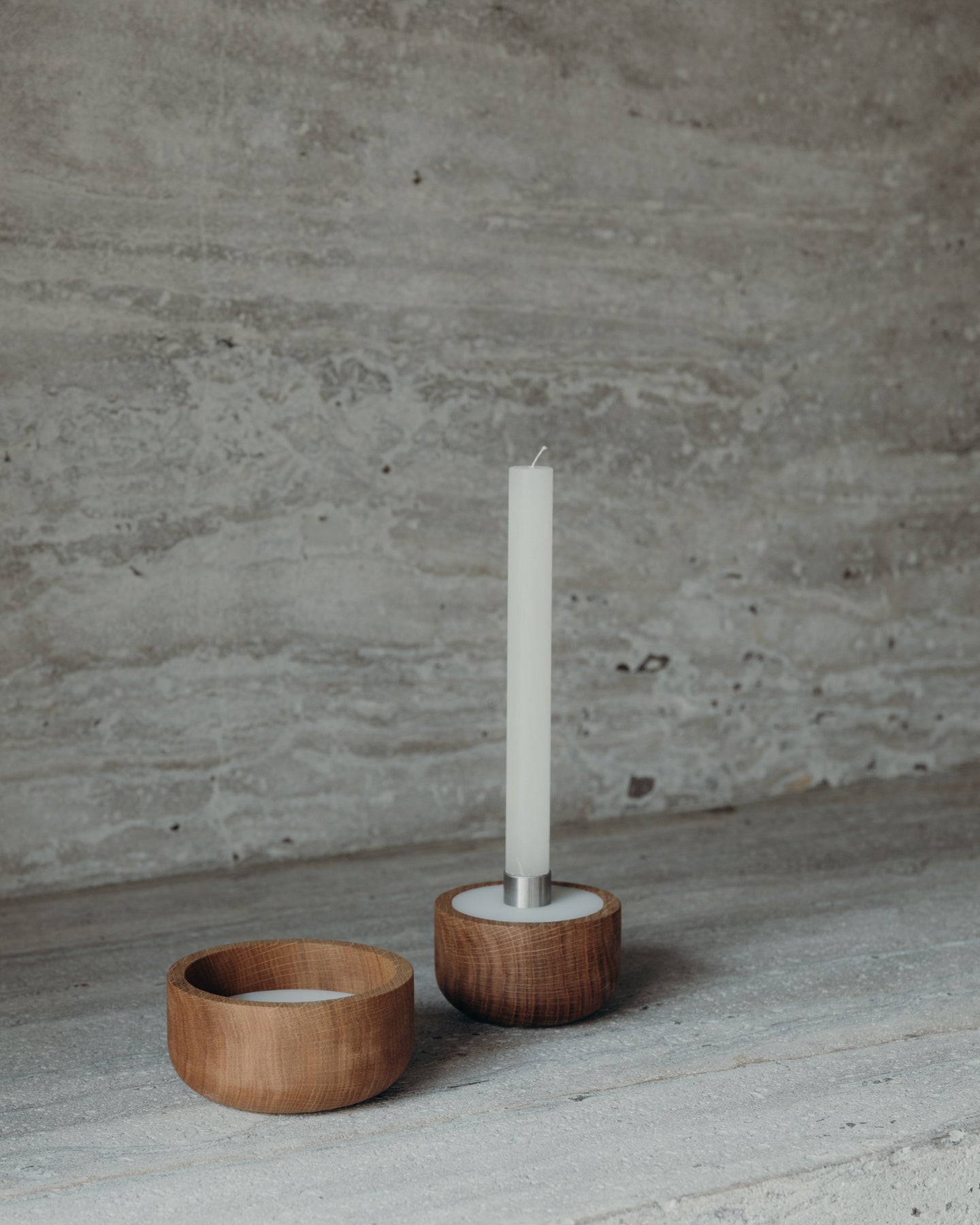 - Candle: Het unieke ontwerp van de kaarshouder maakt het mogelijk om open te zijn tijdens gebruik en eenvoudig te sluiten voor opslag. De bodemtray fungeert als een deksel voor het kaarsdragende gedeelte, waardoor een nette ronde doos ontstaat die ook als decoratief interieuritem kan dienen