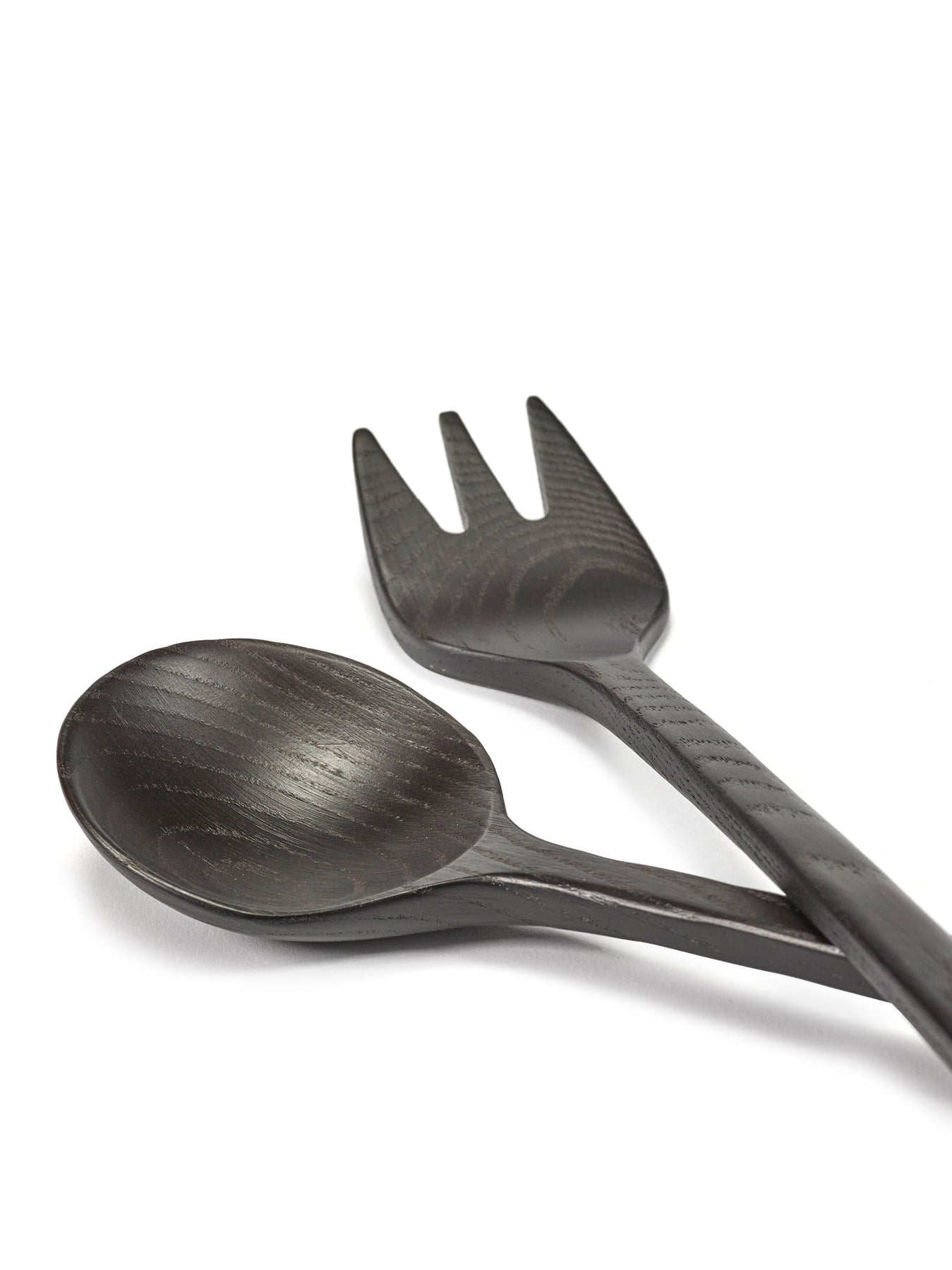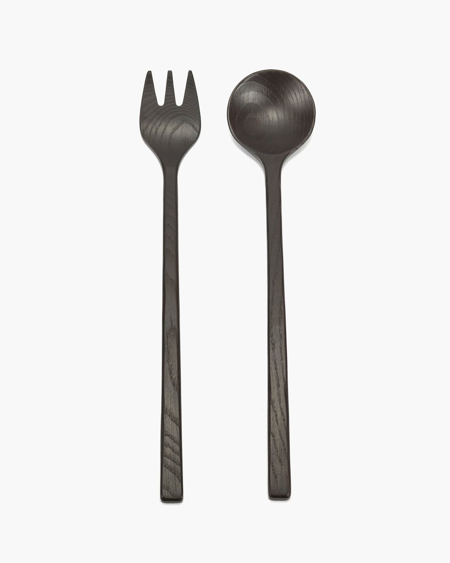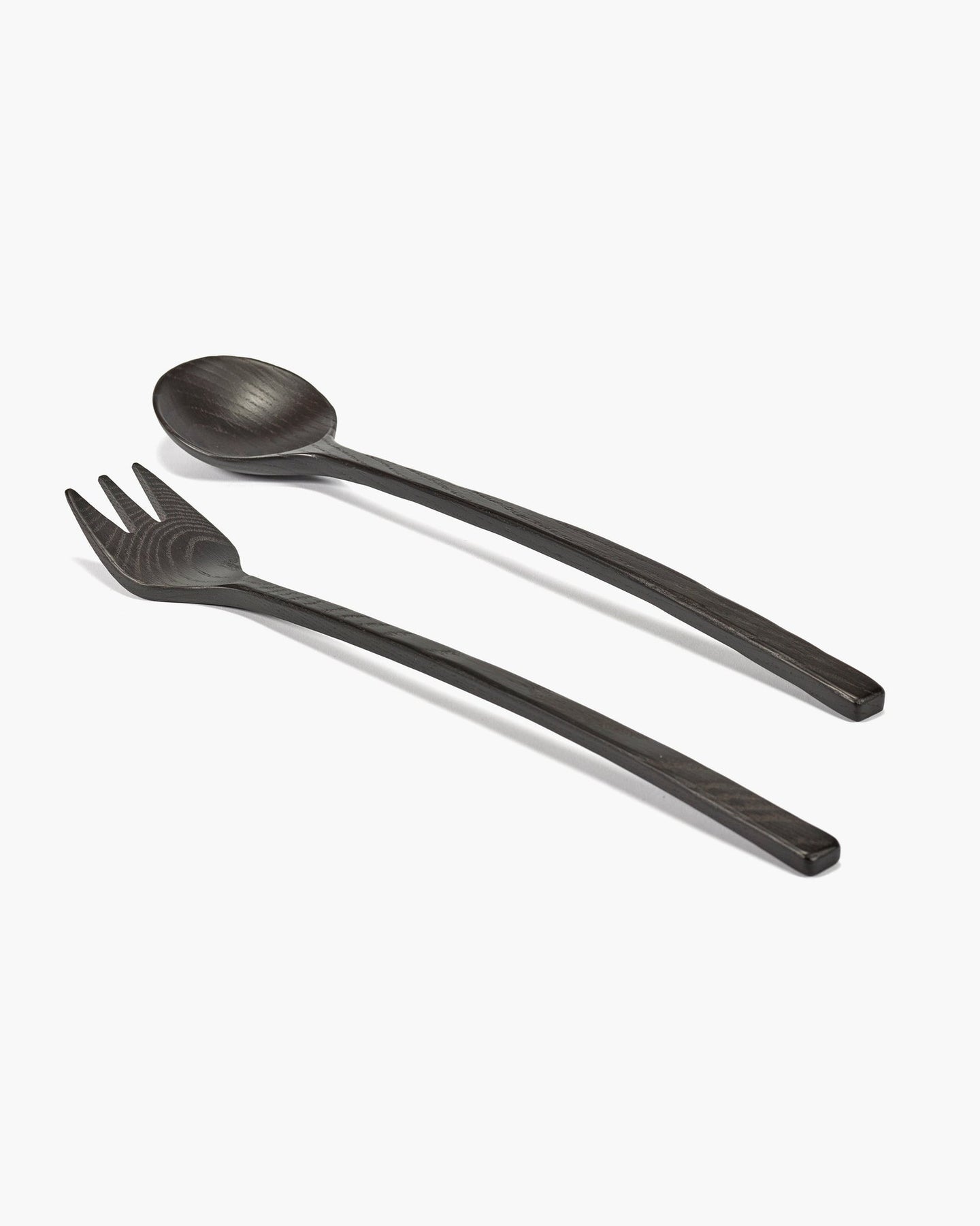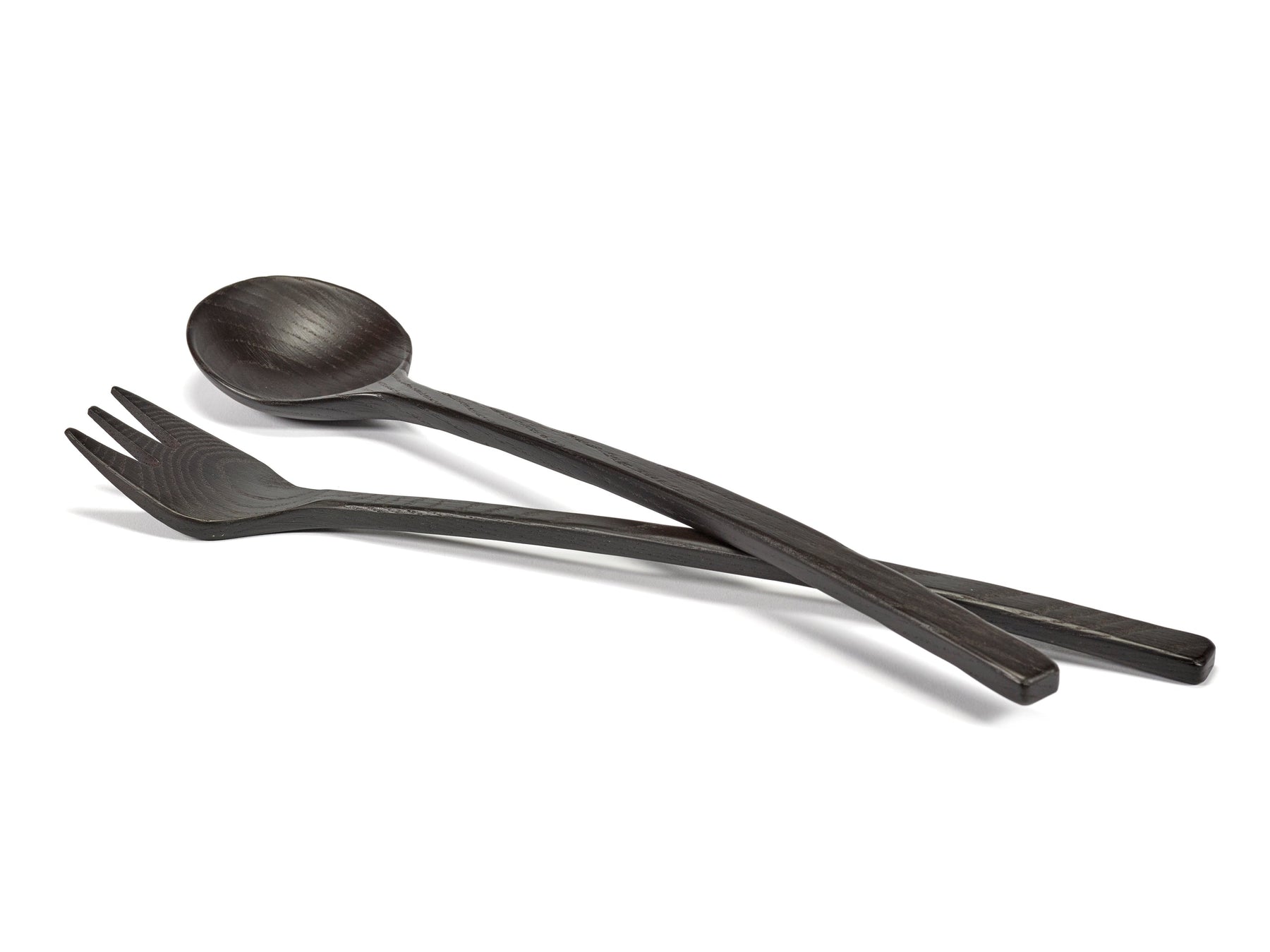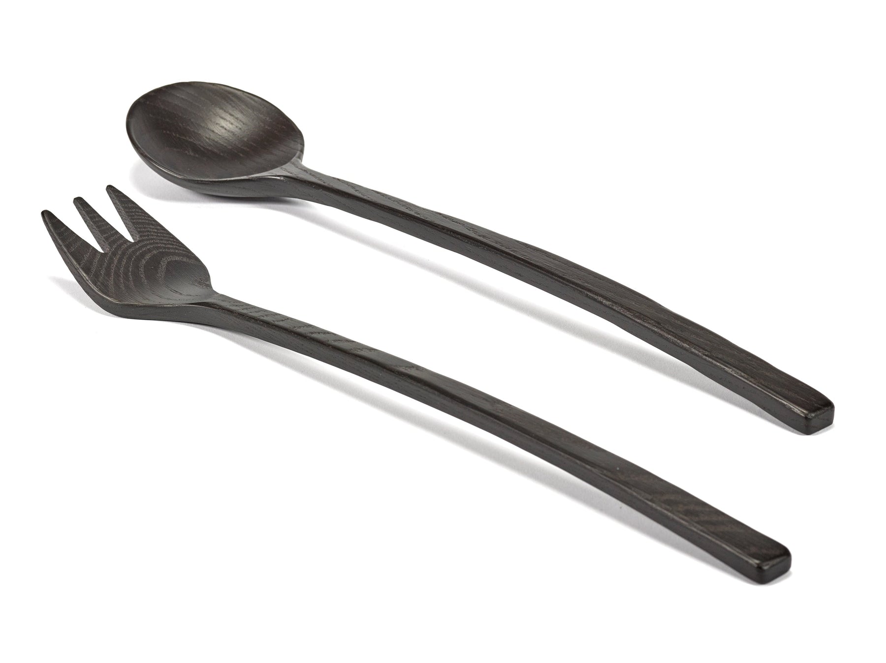 Saladebestek uit zwart essenhout. Niet vaatwasbestendig.